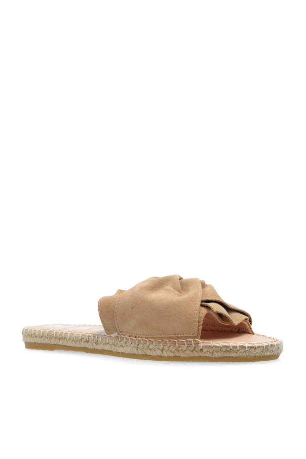 Introducing the epitome of summer elegance - Manebí\'s Suede Flats. Crafted with meticulous attention to detail, these flats embody the perfect blend of luxury and comfort. The beiges and light browns of the suede envelope the foot in softness, creating a versatile palette that complements any ensemble. The silhouette, with its open-toe design and flat espadrille-inspired sole, offers a breezy, laid-back charm. The singular, twisted suede band across the vamp adds a touch of sophistication, making these flats not just shoes, but a statement of refined taste. The interior, marked by the distinctive \"MAN\" inscription, hints at the exclusive craftsmanship of Manebí. Constructed from premium suede for the exterior and interior layers, and a flexible rubber sole, these flats are a testament to both luxury and durability. The sole\'s espadrille-like appearance adds an artisanal touch, while ensuring all-day comfort. Why Purchase This Product? Unmatched Quality: Premium suede construction ensures longevity and luxury. Exclusive Design: The twisted suede band offers a unique, elegant aesthetic. Comfort and Practicality: The flat, flexible sole is designed for day-long wearability. Versatility: Neutral hues make these flats a perfect match for any outfit.