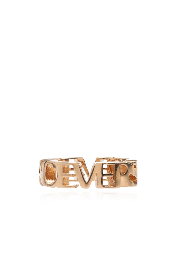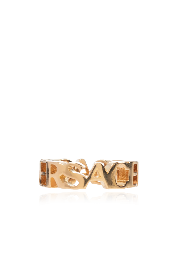 Gold-tone ring from Versace. Made of brass, this item showcases the brand\'s logo.