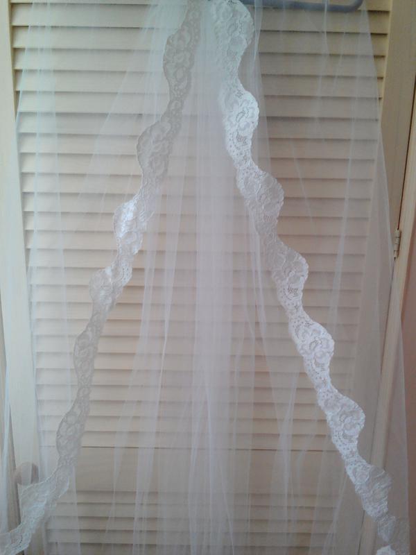 Абсолютно нова фата-іспанка. По всьому периметру вручну обшита мереживом. У використанні не була, оскільки я для весілля замовляла дві, ця не пригодилася) Її довжина 1,6 м, мені вона була до підлоги, легка. Досатньо пишна, скільки метрів вже не пам'ятаю, при потребі виміряю. Мала таку ж, тільки беж мережива. Можу скинути фото як вона ''лежить'' на зачісці.