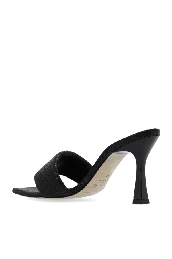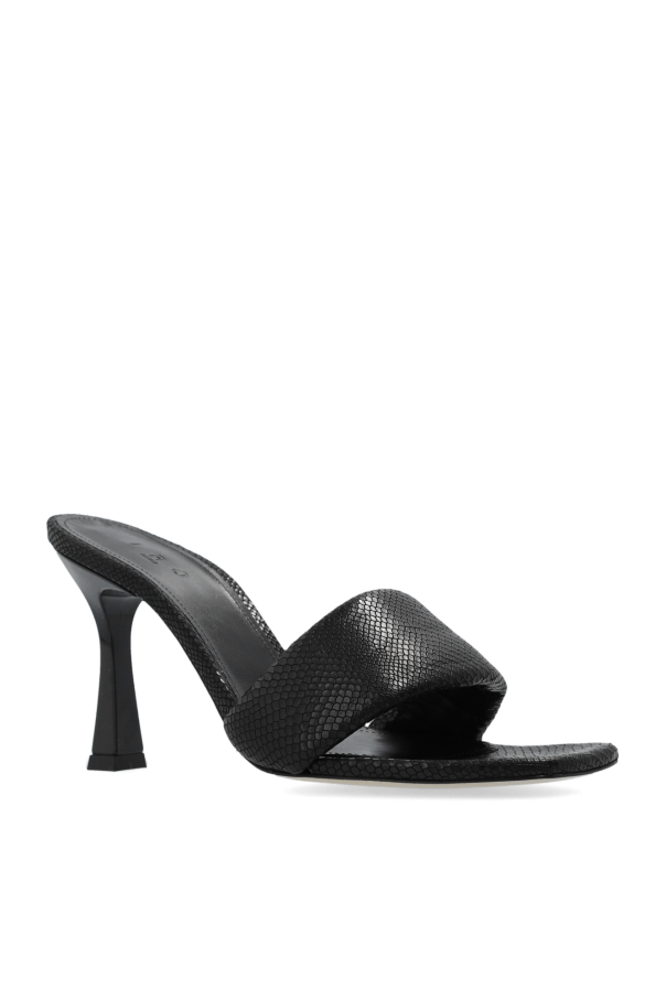 Black ‘Yolanda’ heeled mules from Iro. Made from leather with a snakeskin effect, this pair features a square toe and beige leather sole.