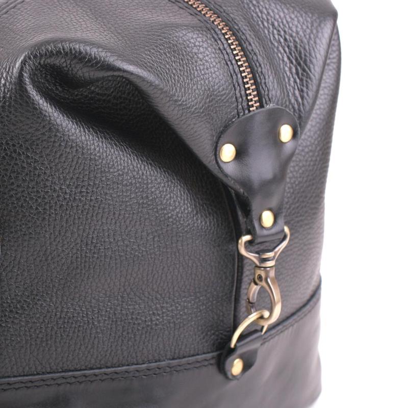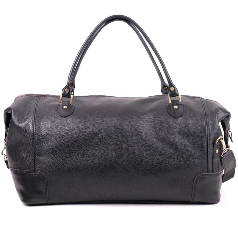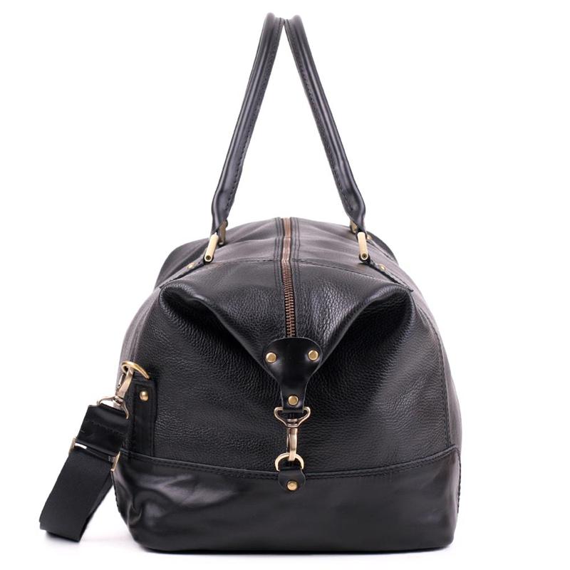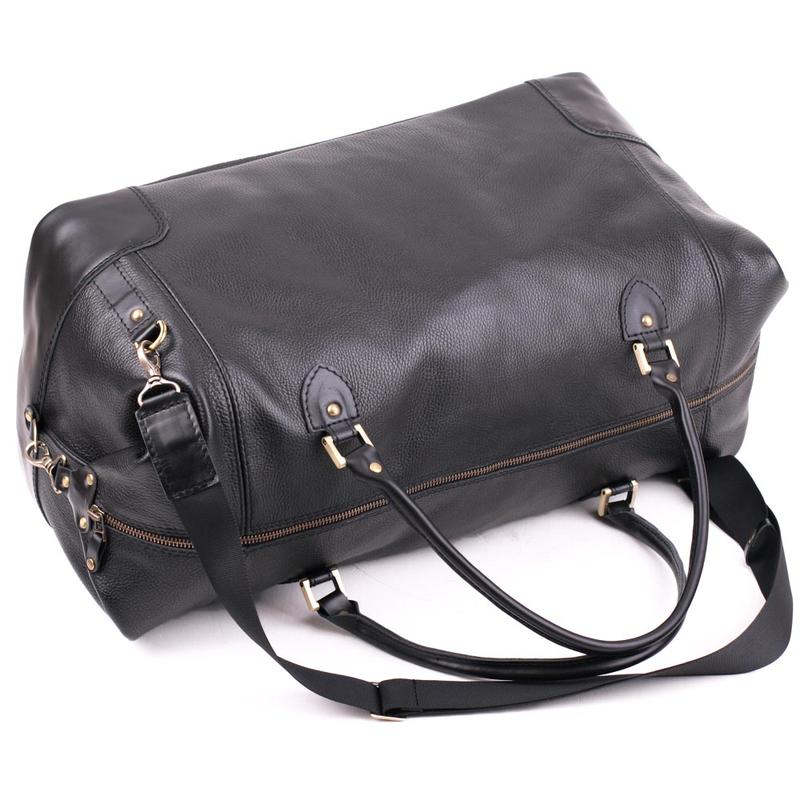 Кожаная прочная сумка спортивная, дорожная стильная черная
