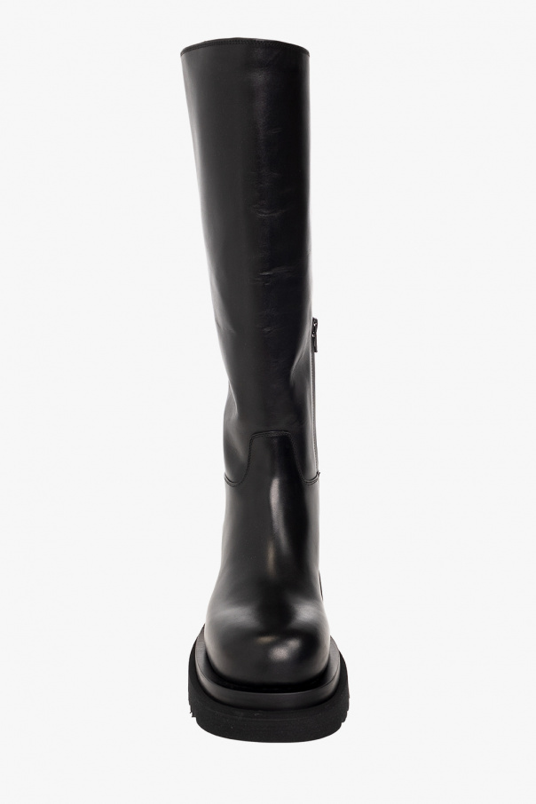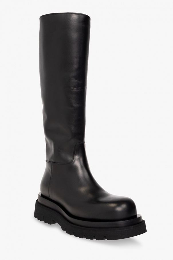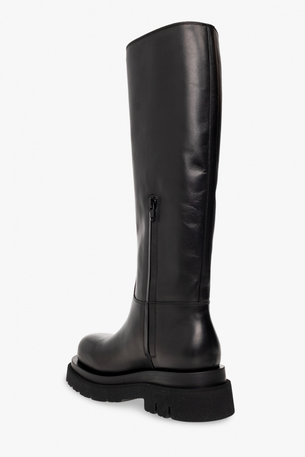 Black ‘Lug’ boots from Bottega Veneta. Crafted from calf leather, this model sits on a rubber sole and features a side zipper.