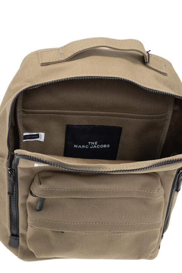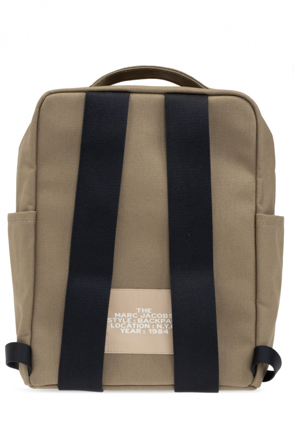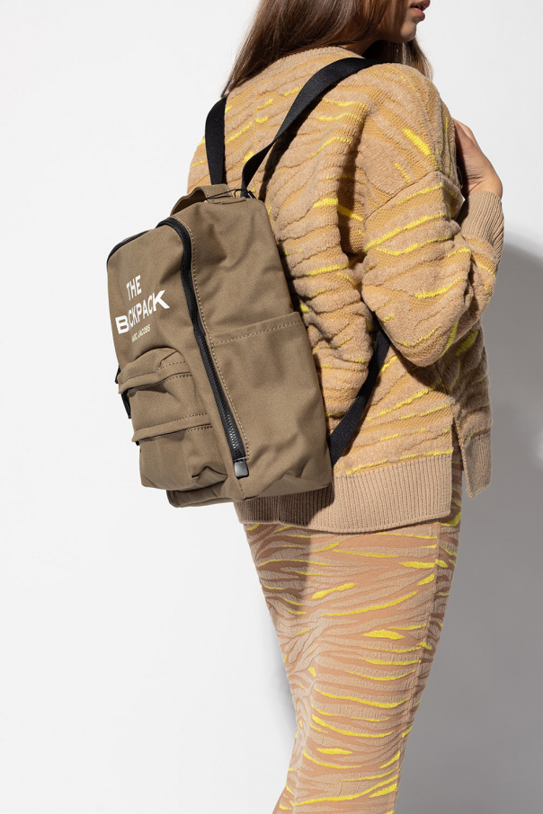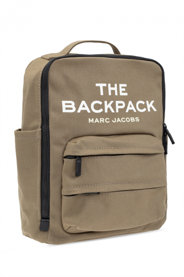 Green backpack from Marc Jacobs (The). Made of cotton, this model fastens with a two-way zip. It is complete with a printed logo pattern in white, two zip pockets, two slip pockets, half-round handle, adjustable shoulder straps, black trims and one internal compartment with one slip pocket.