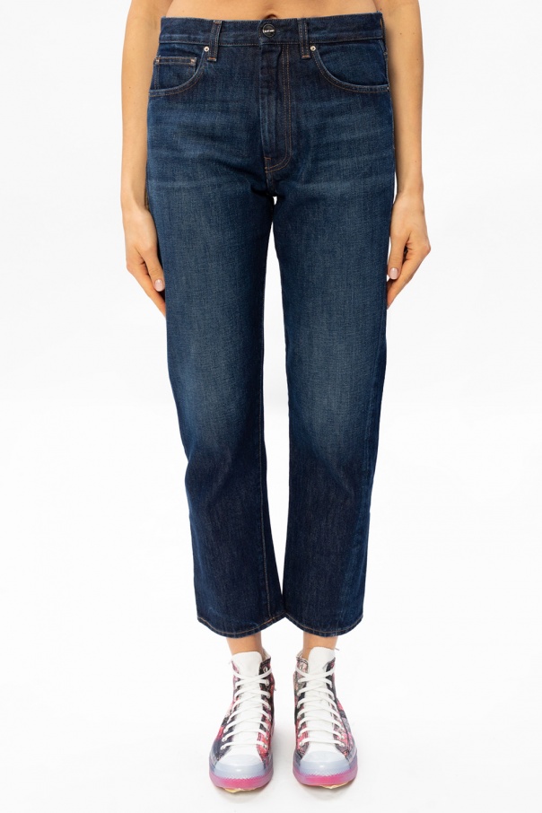 Dark blue ‘Original’ jeans from Toteme. Sporting a logo-embossed patch on the back, this pair falls down with regular legs and features zip fly, button fastening and classic five pockets.