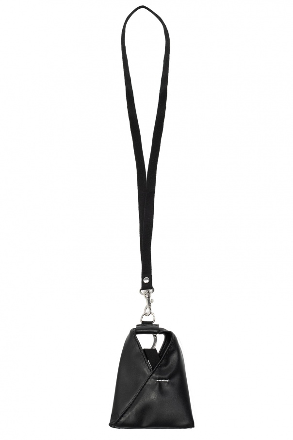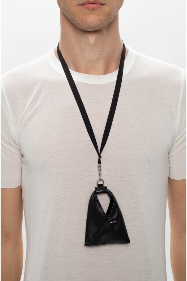 Black lanyard with a mini Japanese bag pendant from MM6 Maison Margiela.