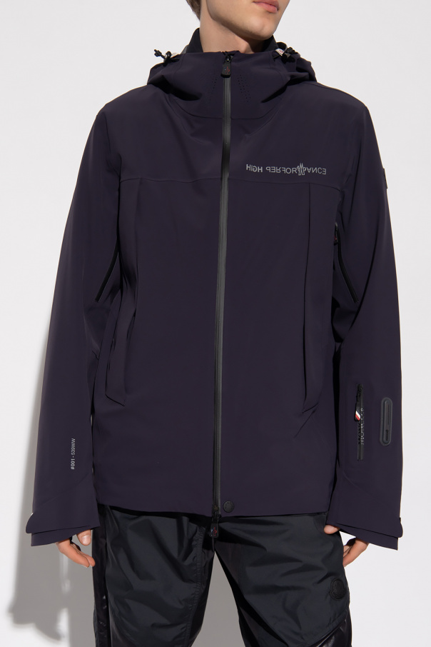 Navy ‘Chessiler’ ski jacket from Moncler Grenoble. Crafted from nylon with a technical outer shell and equipped with lightweight Primaloft® Gold Insulation Active which ensures breathable comfort, warmth and fast-drying properties. It features a two-way zip fastening, a drawstring hood, two hidden pockets with zippers on the front, zip pocket and logo detail at the sleeve, velcro-fastened cuffs with thumbholes and a drawcord-adjustable hem with an elastic band. It comes with a detachable inner layer with a two-way zipper, long sleeves and two zipped pockets. This model presents functional details like: Recco reflector technology that allows the wearer to be detected by rescuers, and tool pockets with waterproof YKK® AquaGuard® zip closures.