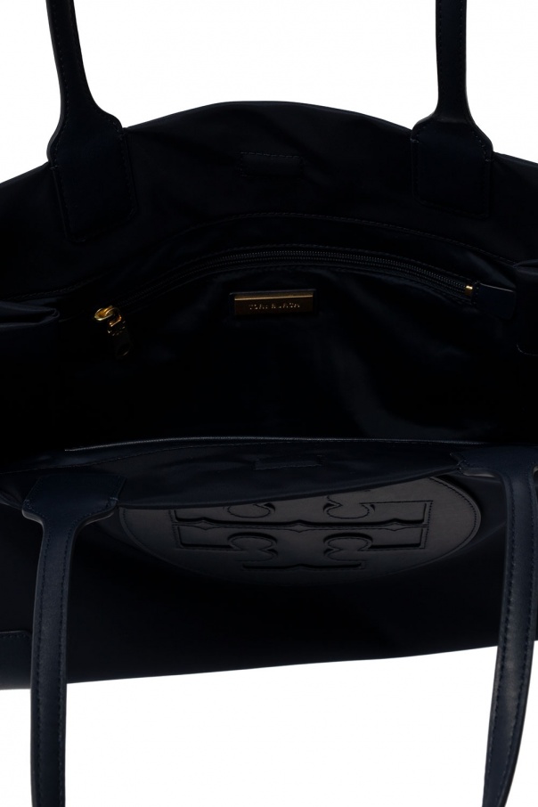 Navy blue ‘Ella’ shopper bag from Tory Burch. Embellished with a logo-embossed patch, this design features two half-round handles, leather trims and one internal compartment with one zip pocket and one slip pocket.