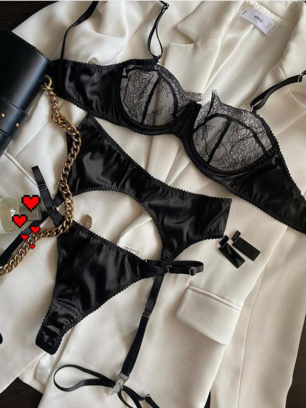 Комплект білизни із чорного шовку Армані і мережива шантільї.