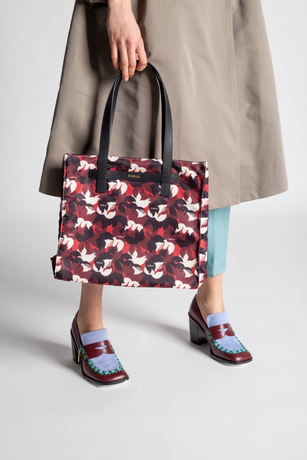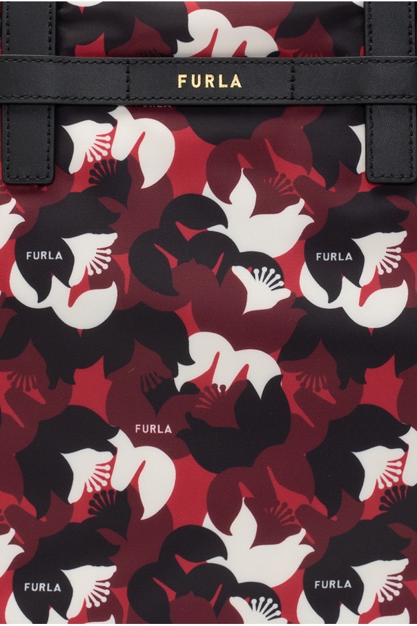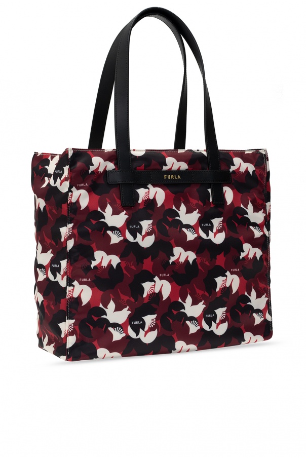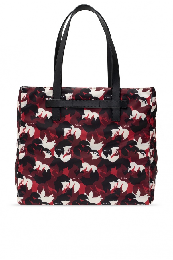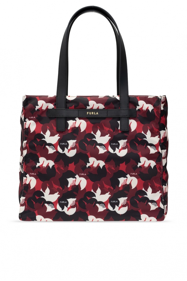 Red, black and white ‘Digit’ handbag from Furla. Embellished with a logo pattern, this design features two half-round handles and main internal compartment with a zip pocket.