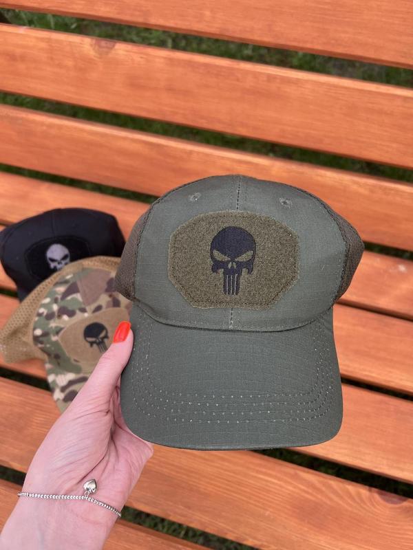 Літня Бейсболка «Каратель» Punisher (МУЛЬТИКАМ / ОЛИВА / ЧОРНИЙ)