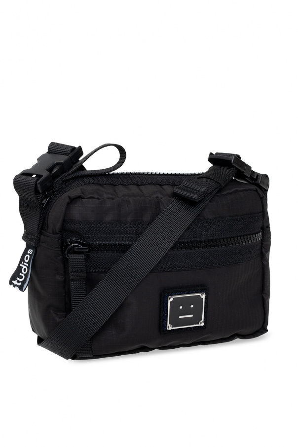 Black shoulder bag from Acne Studios. Enriched by a logo application, this design features a zip fastening, a zipped pocket on the front, a shoulder strap, silver-tone metal hardware and one internal compartment.