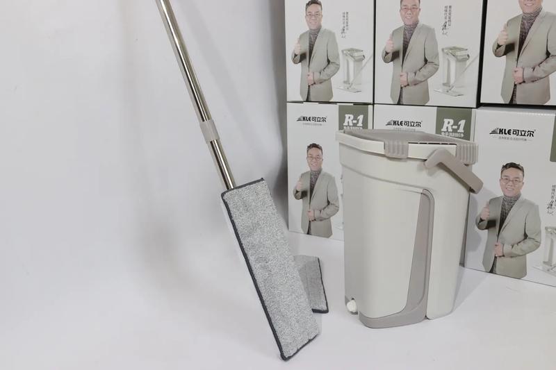 Комплект содержит швабру и специальное ведро для отжима, которые имеют такие