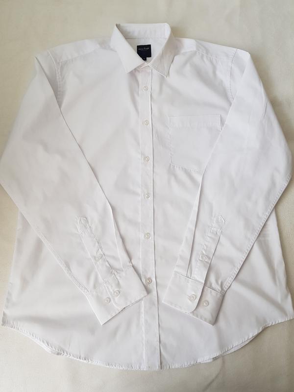 Качественная белая рубашка в очень красивом состоянии, обхват груди 116 см, обхват талии 112 см, длина рукава 65 см, длина 77 см, ширина плеч 47см, обхват по шее 40см, без дефектов.
