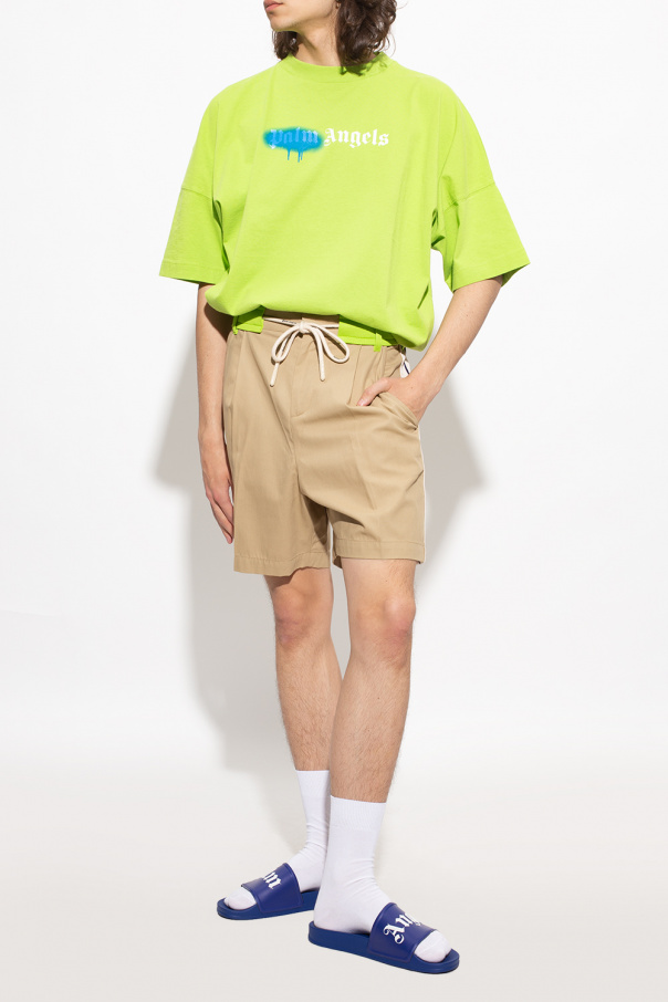 Navy slides from Palm Angels. Resting on a navy rubber sole, this pair features a white logo print in white.