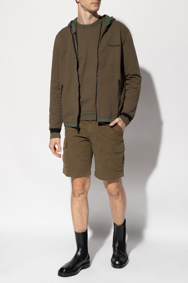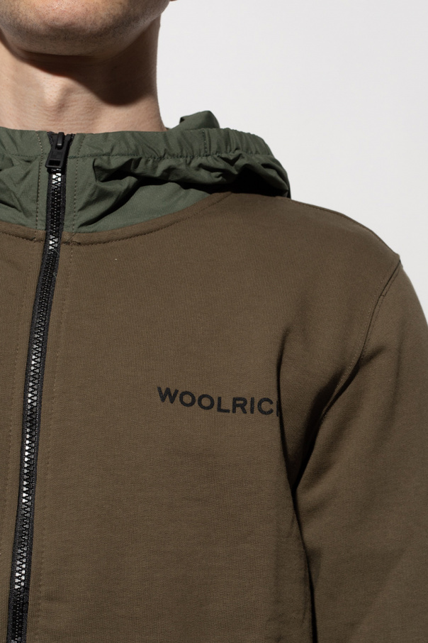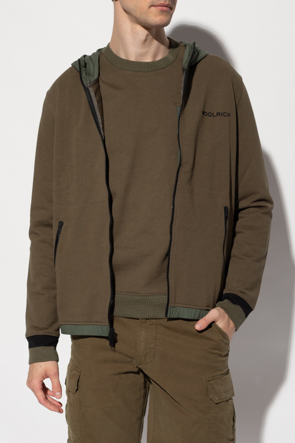 Green and black hoodie from Woolrich. Made of cotton, this garment features a two-way zip, two front zip pockets, black logo print and long sleeves with ribbed cuffs.