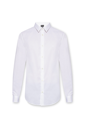 Navy and white shirt from Etro. Made of cotton. Fastened with buttons, this form-fitting design features a stripe pattern, navy logo embroidery and long sleeves with buttoned cuffs.