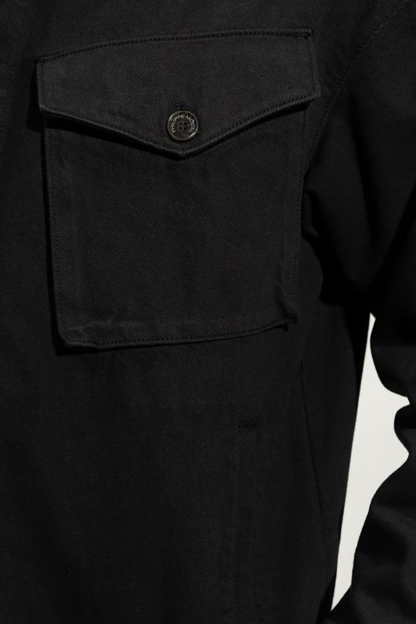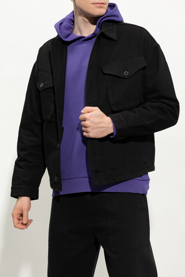 Black ‘Gerard’ jacket from Philippe Model. Crafted from cotton, this style features button fastenings, four pockets (including two flapped ones with a button), and long sleeves with button cuffs.