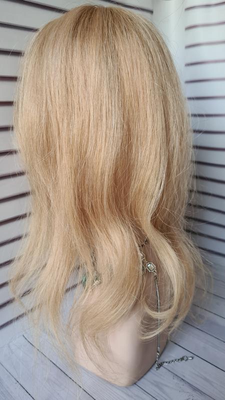 Накладка на макушку из натуральных человеческих волос без имитации кожи головы.Волос ровной плотной структуры крашенный.На фото чуть концы подкручены но можно выравнивать завивать красить все что угодно.Накладка плотная и хорошей длинны.Накладки из натуральных волос используются для людей с малым количеством волос.