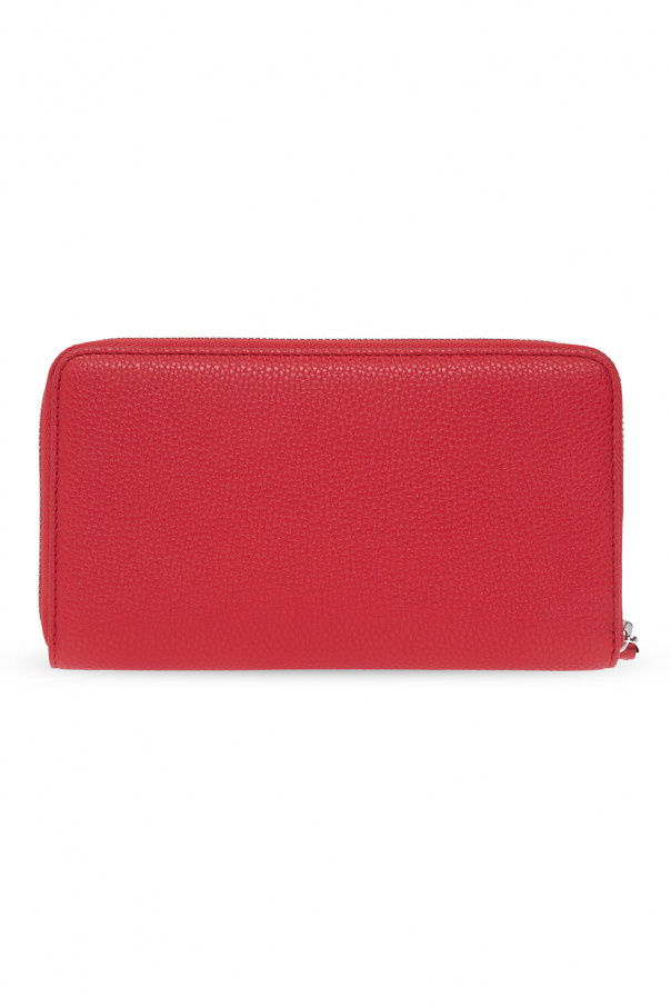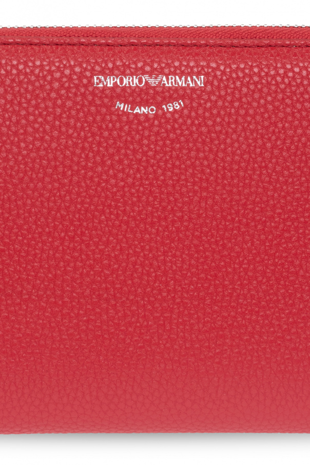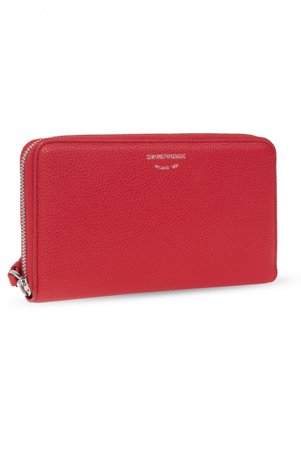 Red wallet from Emporio Armani. Fastened with a zip, this model features an embossed logo and metal hardware in silver-tone as well astwo internal compartments with twelve card slots, one zip pocket and one slip pocket.