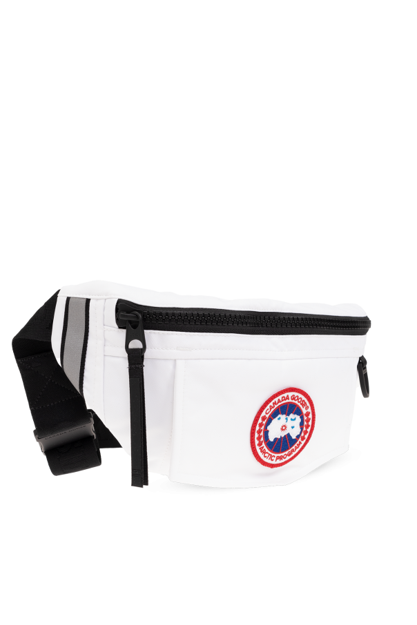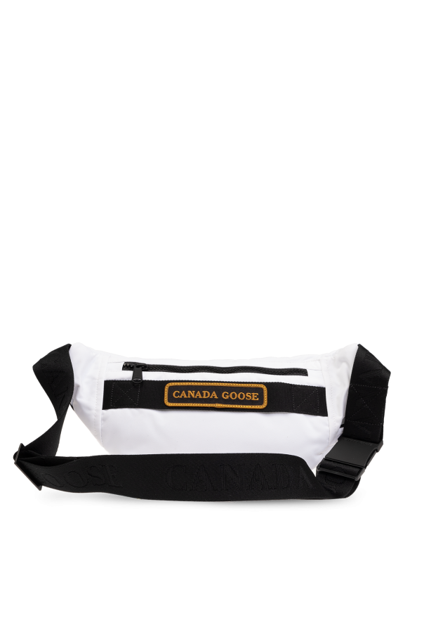 Introducing the epitome of urban sophistication - the White Belt Bag adorned with the iconic \"Canada Goose Arctic Program\" emblem. Crafted with precision from premium 100% polyamide, this accessory promises durability and ease of maintenance, making it an indispensable companion for the modern explorer. The bag\'s classic horizontal silhouette is accentuated by a stark, two-tone color scheme of pristine white with black accents, offering a visually striking contrast that complements any attire. Its main compartment, secured by a robust zipper, ensures your essentials are safely stored, while the adjustable strap provides customizable comfort and wearability. The distinct Canada Goose logo, prominently displayed on the front, serves as a testament to the brand\'s legacy in crafting high-endurance luxury wear. An additional authenticity marker is subtly placed inside, reaffirming the bag\'s genuine origin and superior quality. Why Purchase This Product? Exquisite craftsmanship from 100% polyamide for longevity and ease of care. Adjustable strap for tailored fit and supreme comfort. Elegant two-tone design that enhances any outfit. Emblematic Canada Goose branding for distinguished appeal.