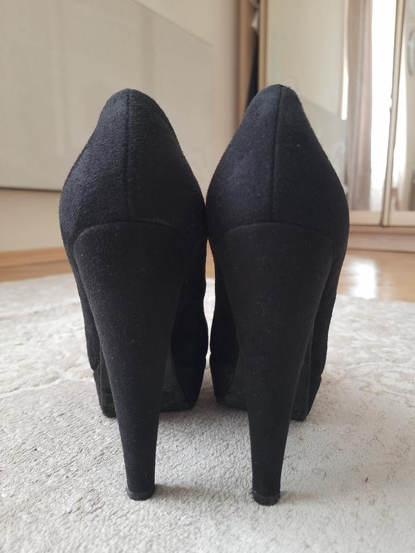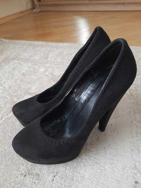 Продам чорні замшеві туфлі, на високому каблуку 14 см. Розмір 37, довжина устілки 24 см. Стан ідеальний, дуже гарно дивляться на нозі. Можлива відправка поштою.