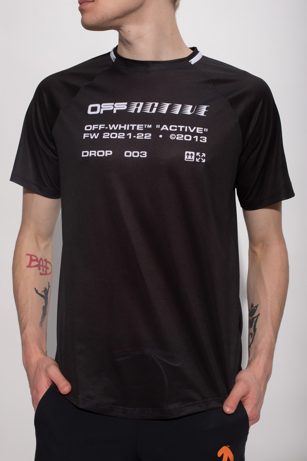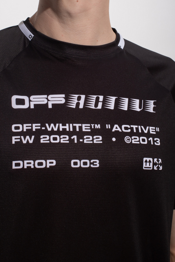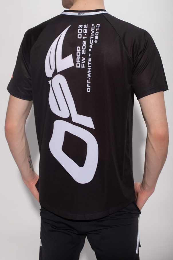 Black crewneck T-shirt from Off-White, the ‘Active’ line. Enriched by a white and orange graphic with the brand's logo, this style features shorts sleeves.