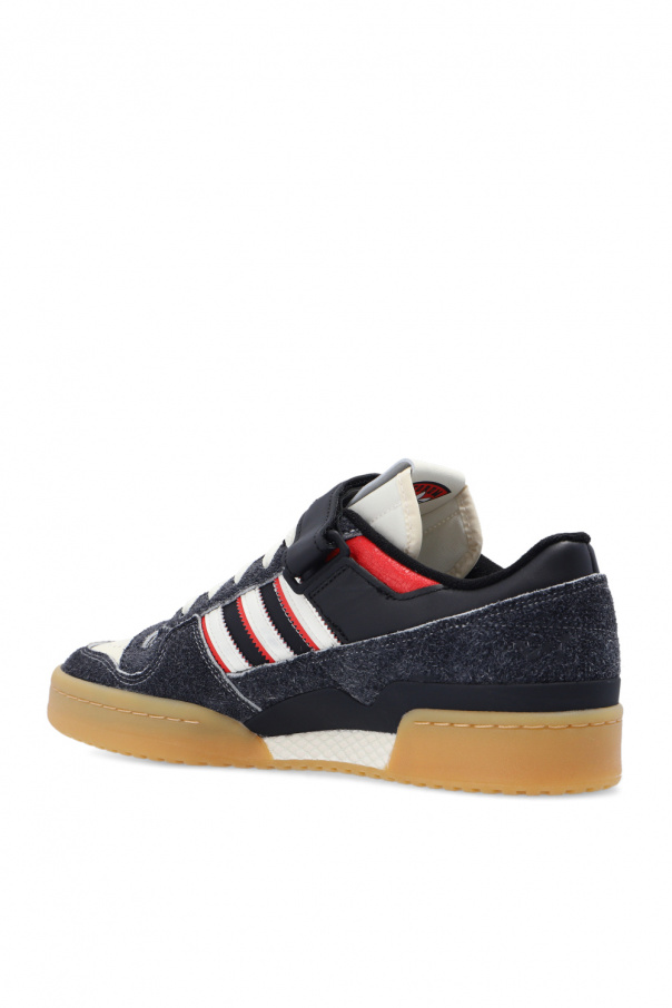 Navy blue, black and white sneakers from ADIDAS Originals x Midwest Kids. Crafted from leather, this lace-up model sits on a beige, white and red rubber sole and showcases a decorative velcro fastening, a graphic logo print and the brand's iconic three stripes.