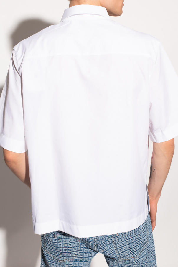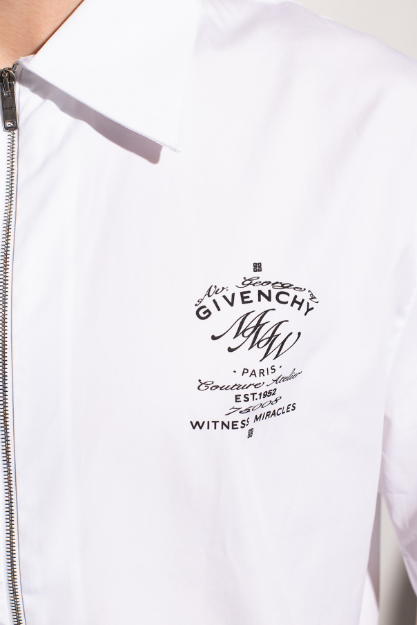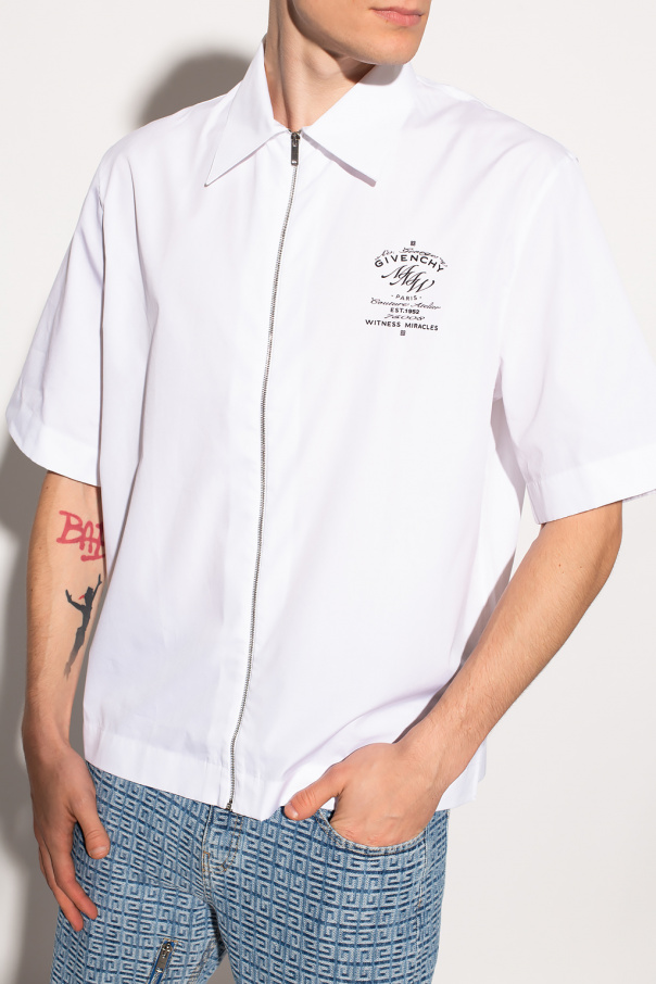 White shirt from Givenchy. Crafted from cotton, this style features a zip fastening, short sleeves and a black graphic print with the brand\'s logo on the front.