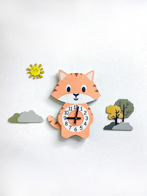 Детские часы на стену Кот с дополнительными элементами - отличный набор декора