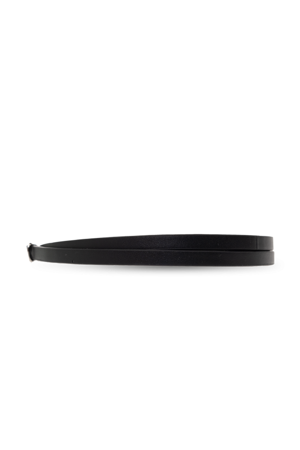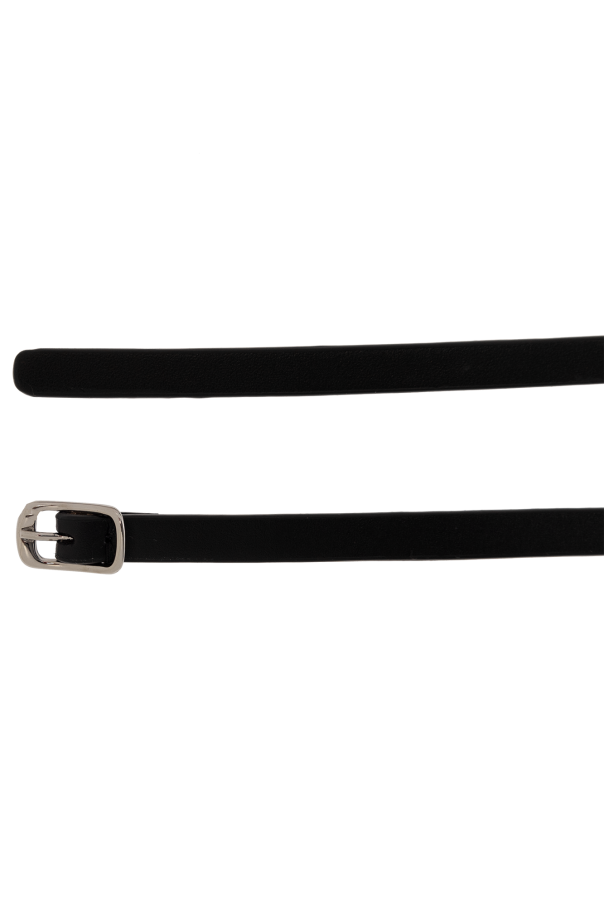 Black belt with a silver-tone metal buckle from Maison Margiela. Made of leather.