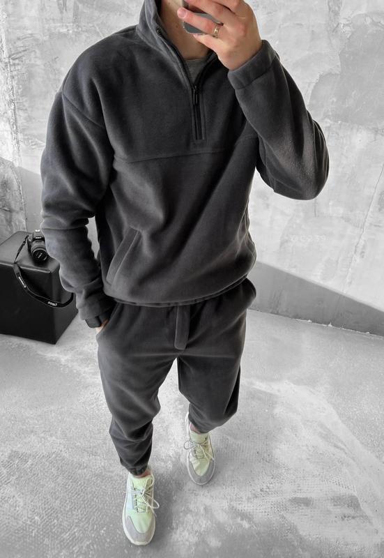 Костюм теплий флісовий для чоловіків темно-сірий демісезонний весна-осінь