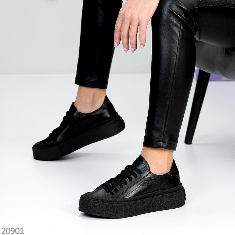 Шикарні чорні шкіряні кеди, натуральна шкіра на платформі