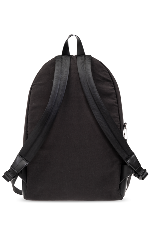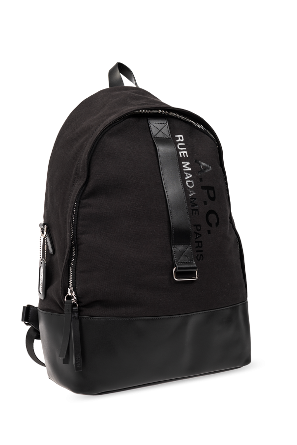Black ‘Sense’ backpack from A.P.C. Crafted from fabric, this design secures with a two-way zip and features a printed logo on the front, two half-round handles (one on the front), adjustable shoulder straps, gold-tone metal hardware and one internal compartment with a slip pocket.