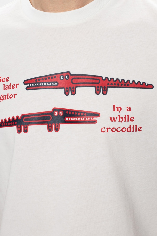 White crewneck T-shirt from Moncler Genius, the ‘1952 no.2’ collection. Cut from cotton, this style features a black and red graphic print and a branded patch on the sleeve.