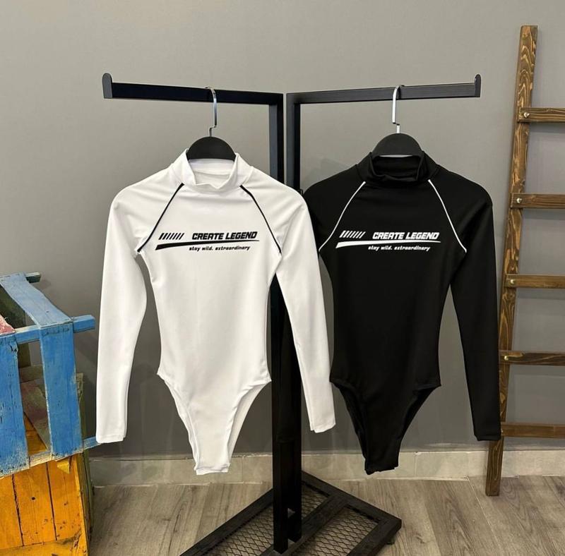 Базовый боди со стойкой под горло, боди с длинным рукавом из микродайвинга мамСостояние: НовоеЦвет:- Белый