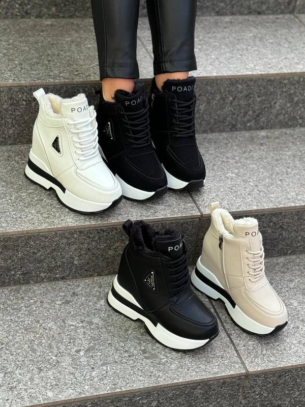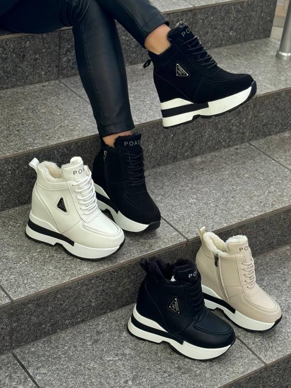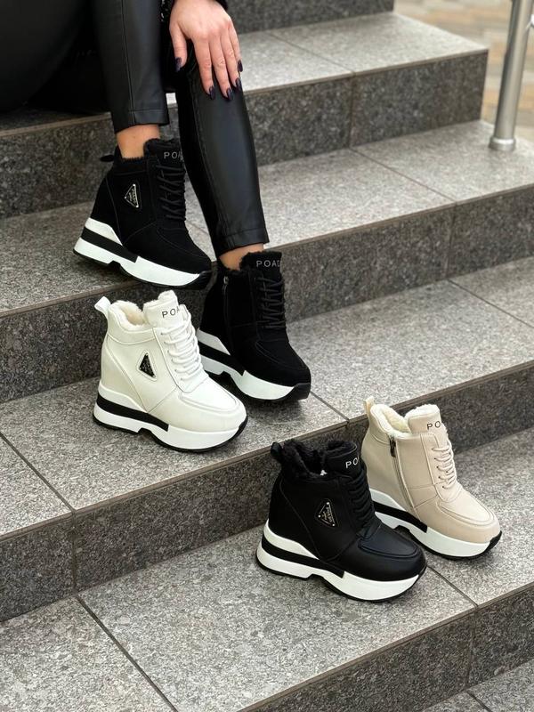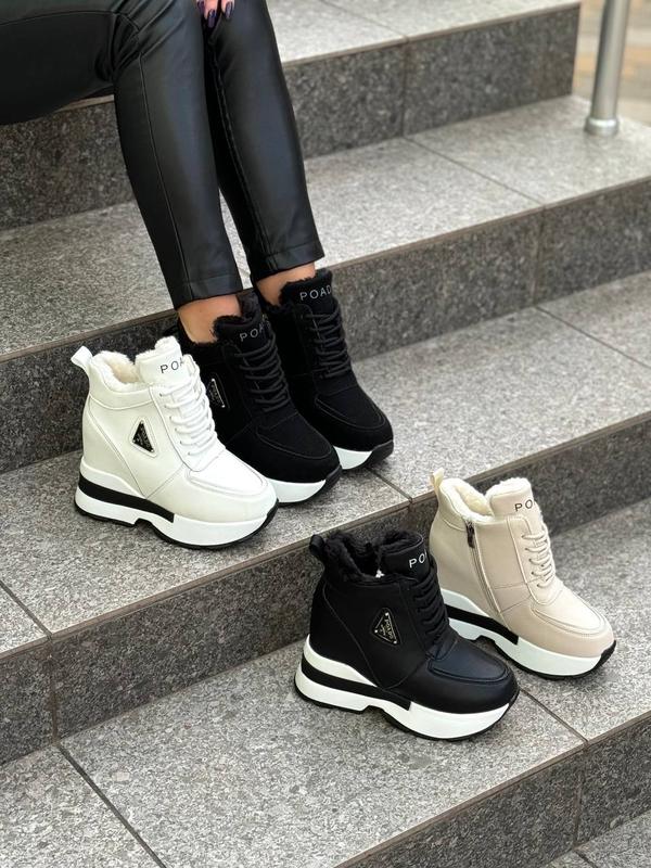 Сникерсы женские зимние в черном белом и бежевом цвете 🖤🖤🖤