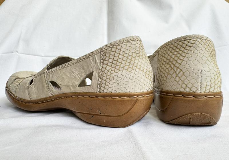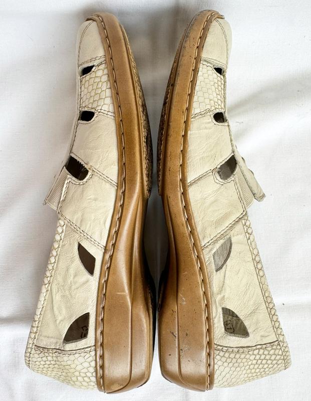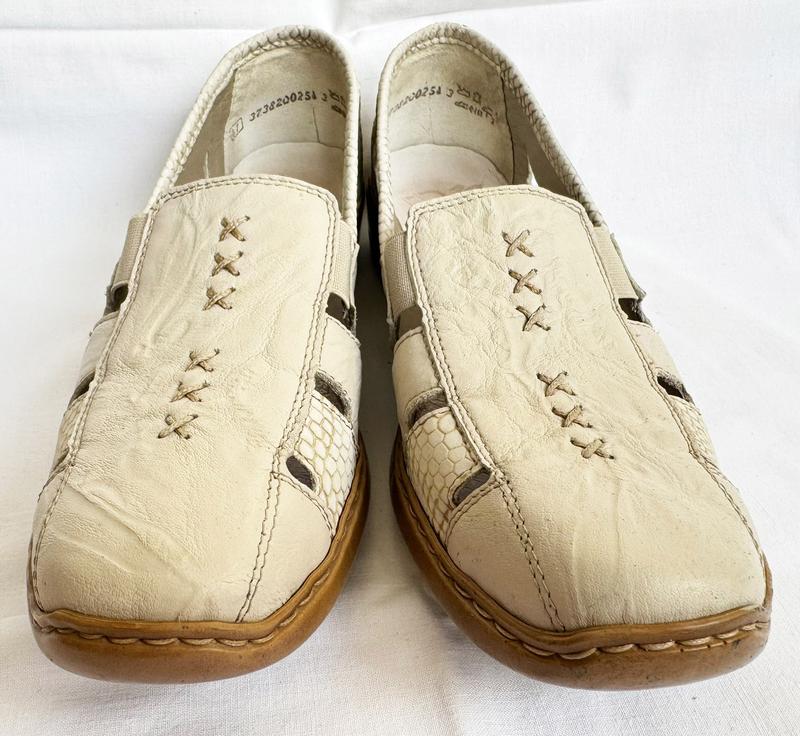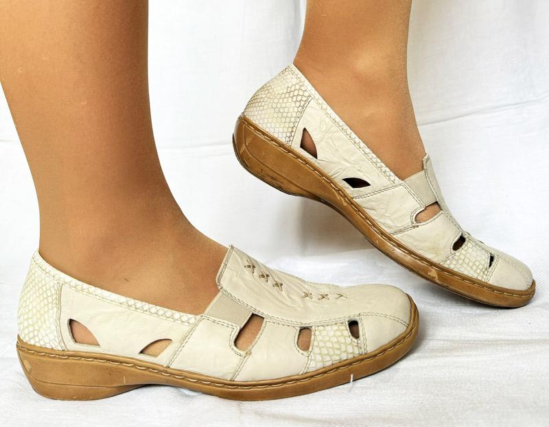 712. Очень легкие - невесомые, комфортные летние туфлы, мокасины известного немецкого бренда "Rieker" в отличном состоянии: стельки чисты без "отпечатков", без посторонних запахов - просто несколько раз обуты, на кольца несколько микроцарапок