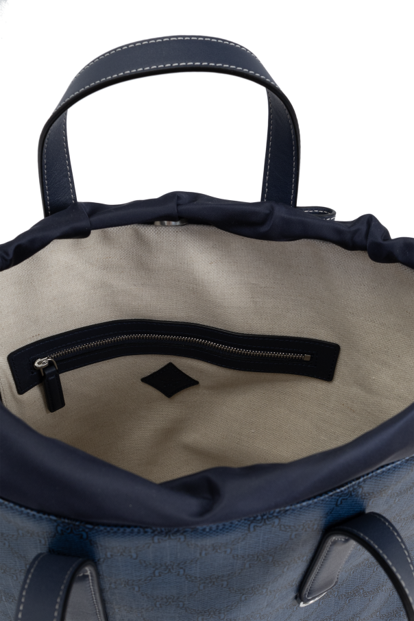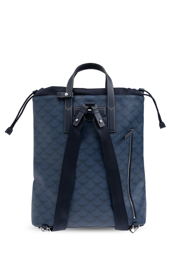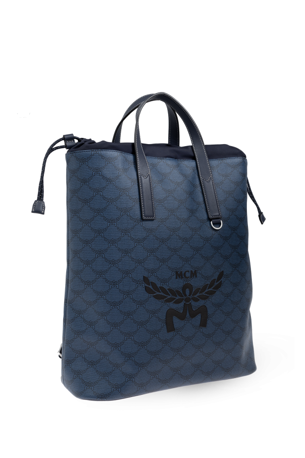 Introducing the epitome of luxury and functionality - the MCM Logo Backpack. Crafted with precision, this exquisite piece showcases an enduring blue hue, complemented by the iconic pattern of repeated brand emblems, creating a subtle yet unmistakable texture. The centerpiece, a prominent logo encased in a laurel motif, exudes elegance, setting this backpack apart in the realm of luxury accessories. The backpack is engineered for comfort and versatility, featuring sturdy handles and adjustable back straps, ensuring an effortless carry in diverse scenarios. An external zip pocket enhances functionality, offering quick access to essentials, while the rear of the backpack is fortified with clasps, augmenting the security of your possessions. The interior, lined with a light fabric, illuminates its contents, organized efficiently with a zipped pocket and dual slip pockets, making it the quintessential companion for the discerning individual. Crafted from a fusion of polyester and polyurethane for the exterior, and a cotton lining within, its resilience mirrors the distinguished quality synonymous with MCM. The backpack\'s navy-blue shade further accentuates its stately appearance, rendering it a statement piece of both practical utility and social esteem. Why Purchase This Product? Timeless Design: Signature MCM emblems and laurel logo motif for a refined aesthetic. Enhanced Functionality: External zip pocket, interior organization, and security clasps. Adjustable Comfort: Sturdy handles and adaptable back straps for tailored ease of use. Durable Materials: High-quality polyester, polyurethane, and cotton lining ensure longevity. Luxury Statement: A symbol of status and fashion-forward sensibility.