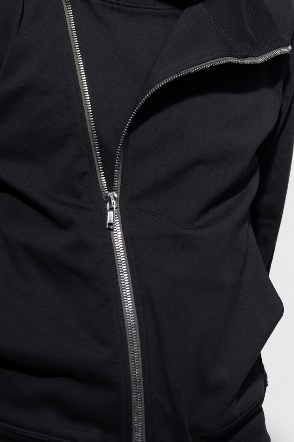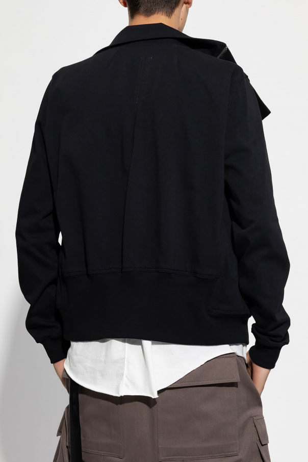 Black sweatshirt with a standing collar from Rick Owens. Made from cotton, this style features a zip fastening, two slip pockets and elasticized trims on the bottom hem and cuffs.