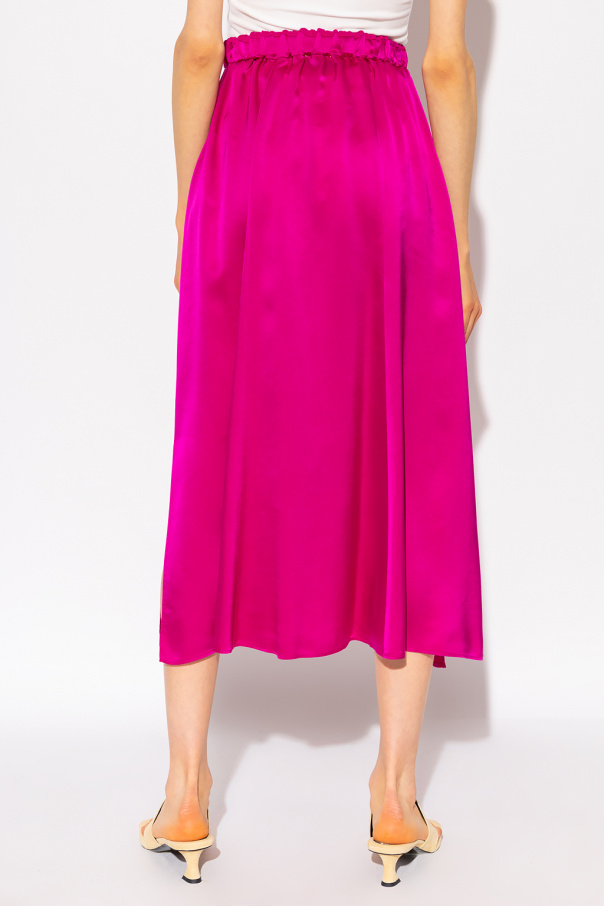 Pink skirt from Forte Forte. Made from silk, this style features an elastic waistband and side slits.