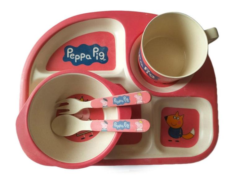 Набор детской посуды из бамбука Bamboo Fibre kids set Свинка Пеппа 5 в 1