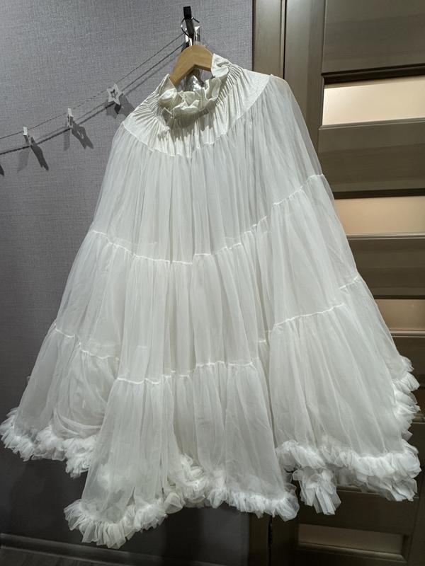 Имеет 3 отдельных слои, по низу прошит отдельный рюш, что создает еще более пышный вид.