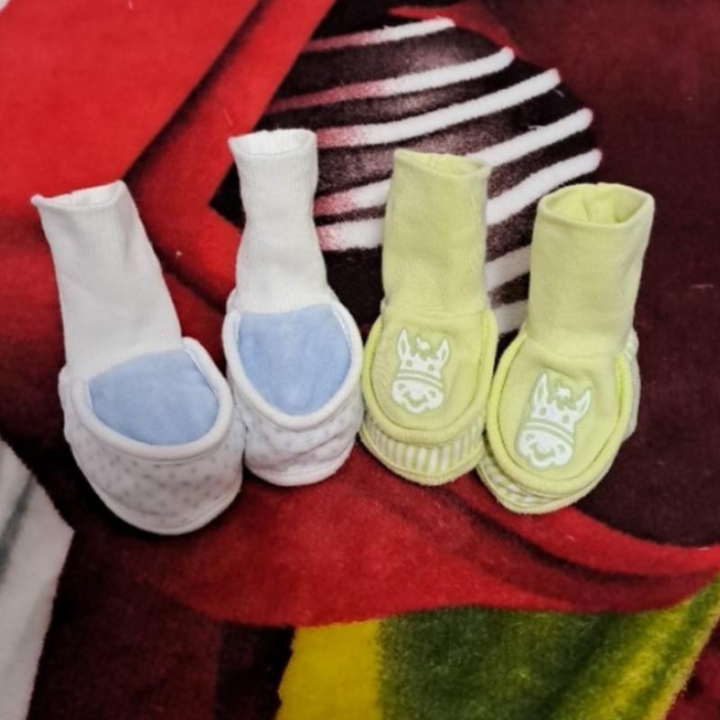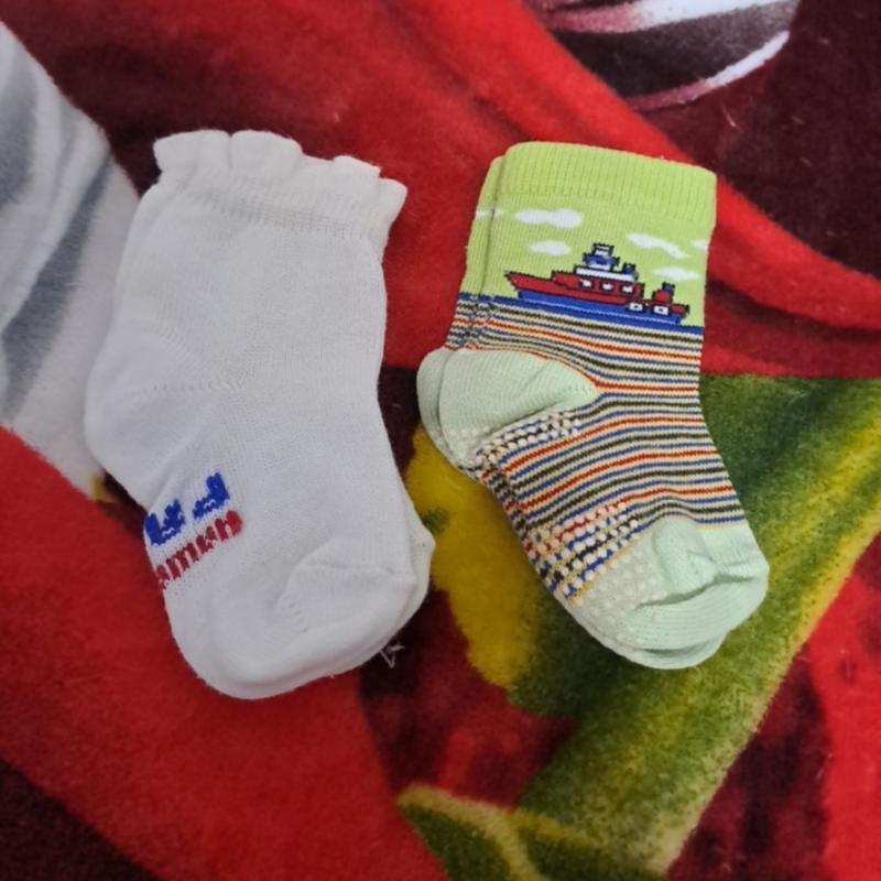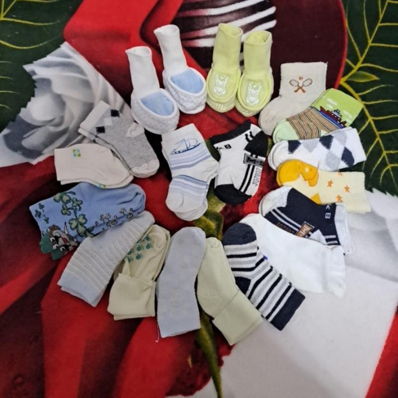 Набор детских носочков от рождения до года. В набор входят две пары пинеток по стопе 8,5 см. Одни пинетки велюровые, вторые-трикотаж-хлопок. Порваных носочков нет. В наборе есть тоненькие и тепленькие носочки. Всего-18 пар.