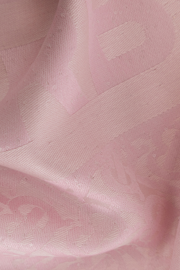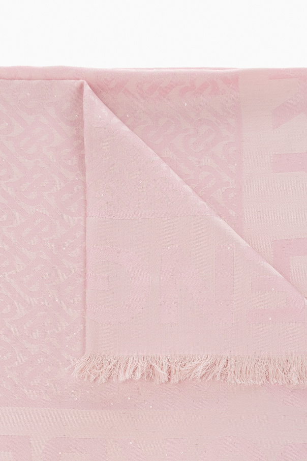 Light pink shawl from Burberry. Crafted from a wool and silk blend and spruced up with glistening sequins, this item showcases a monogram pattern and two frayed edges.