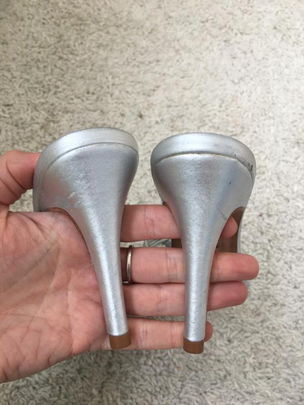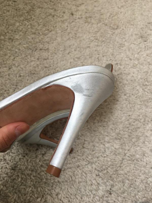 Внешне повреждений нет. Есть маленькая незаметная царапина на каблуке(последнее фото)
