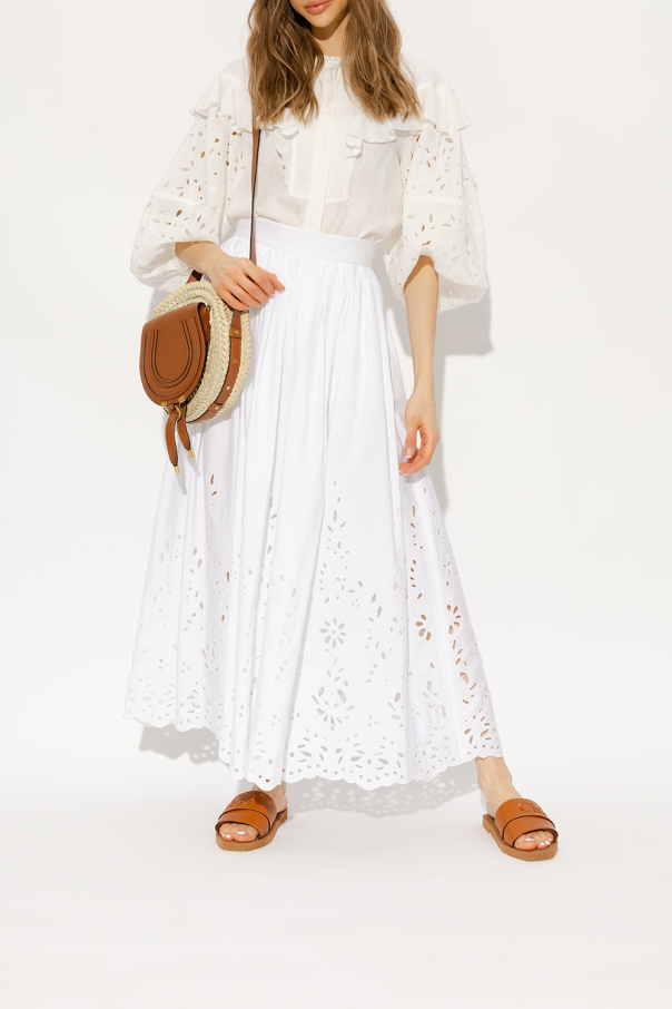 Brown ‘Woody’ slides from Chloé. Crafted from leather, this model sits on a brown rubber sole and showcases an embroidered logo.