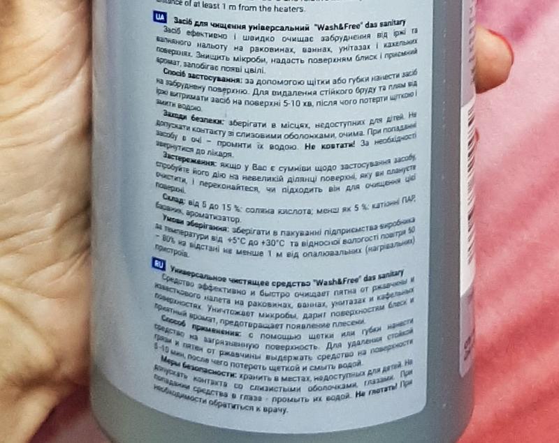 Засіб ефективно і швидко очищає іржу та вапняний наліт на раковинах, ваннах, унітазах і кахельних поверхнях. Знищує мікроби, надає поверхням блиск і приємний аромат, запобігає появі цвілі.
