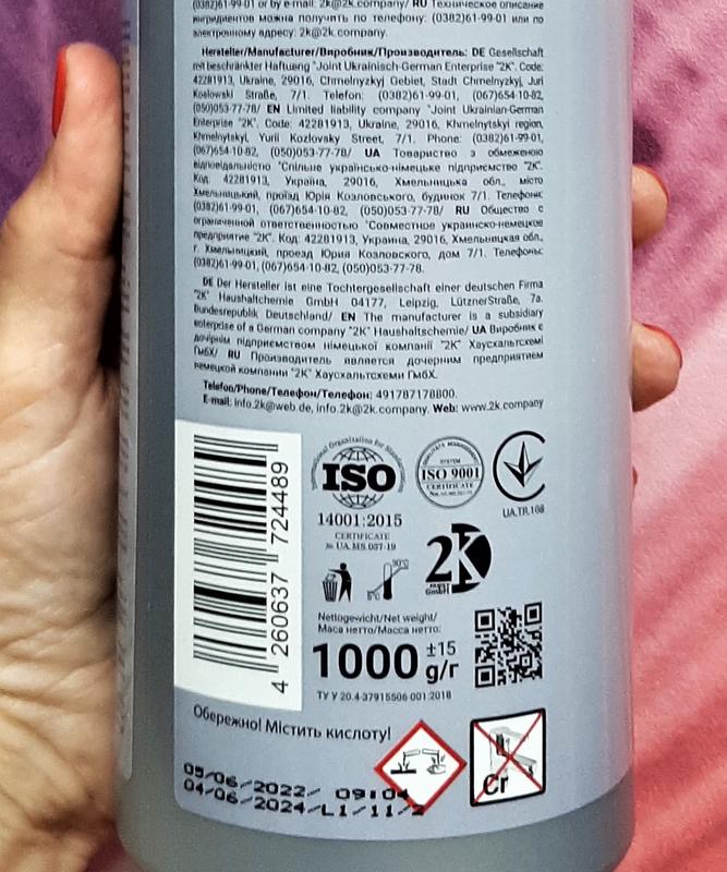 – усуває забруднення іржі та вапняного нальоту.Виробник є дочірнім підприємством німецької компанії "2К".