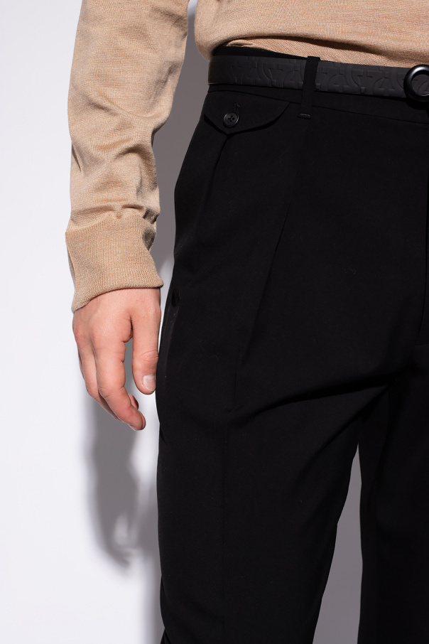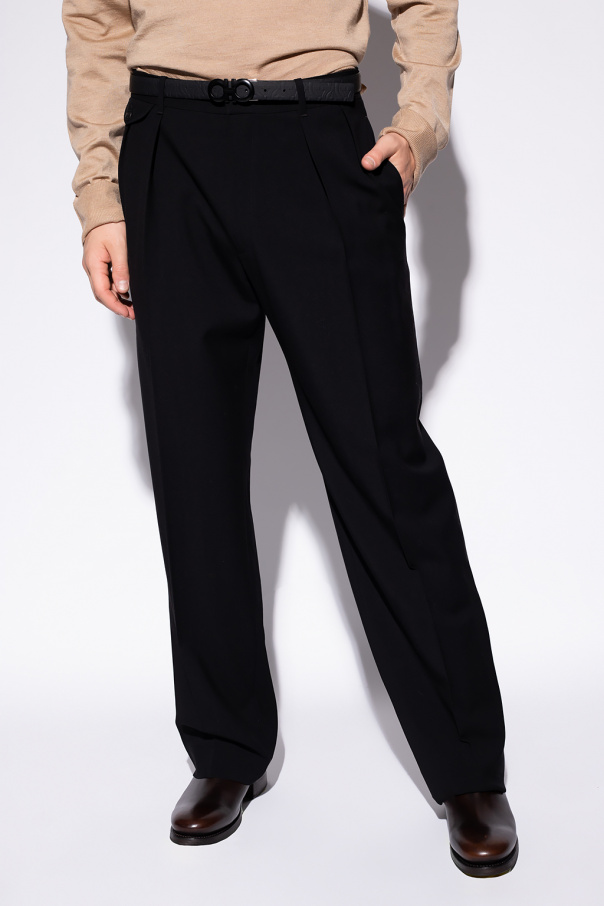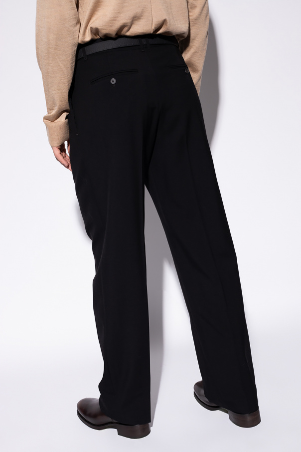 Black pleat-front trousers from The Row. Made of cotton, this pair falls down with slightly tapered legs and features zip, hook and button fastening, two slip pockets, one flap pocket with button closure and two buttoned back pockets.