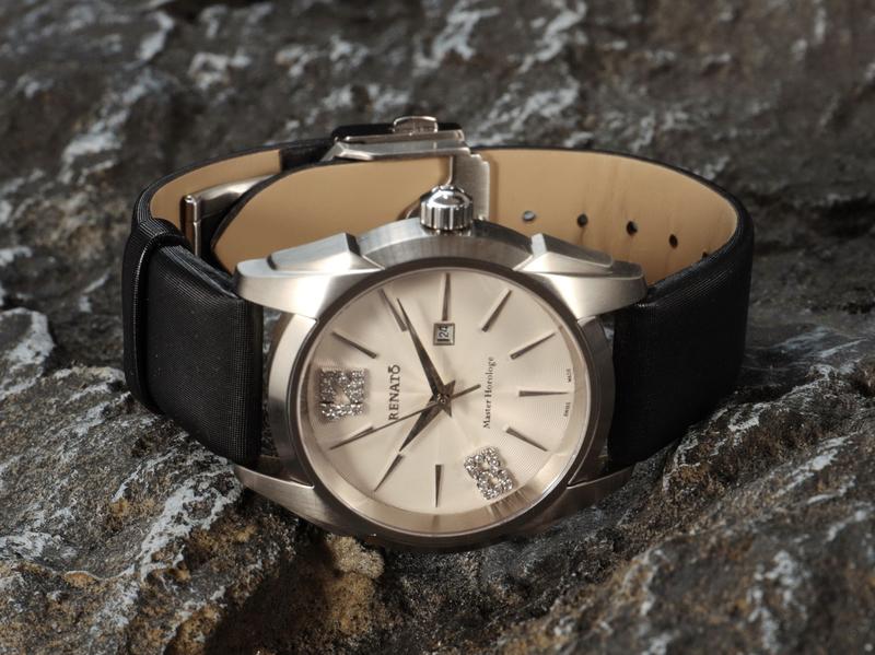 Renato. Круглый, текстурированный, белого цвета циферблат. Арабские цифры 8 и